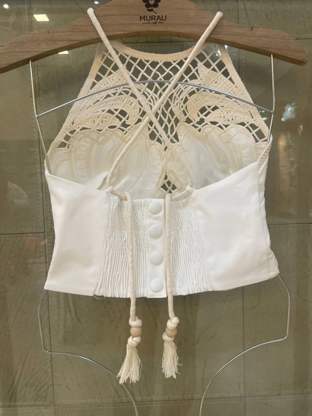 BLUSA CROPPED OFF WHITE BORDADA - MURAU