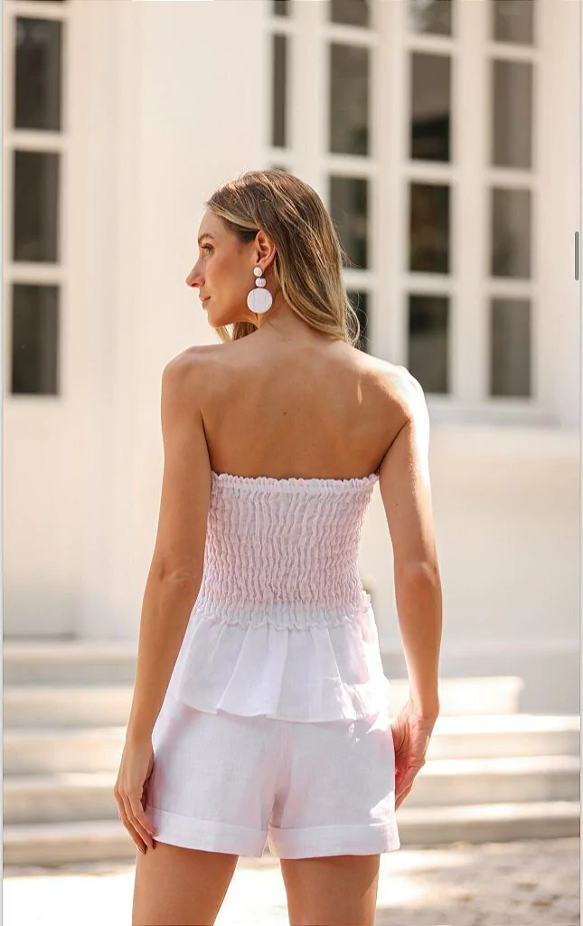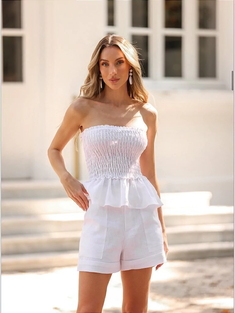 CONJUNTO COMPOSTO DE SHORT COS ALTO, E BLUSA PEPLUM COM LASTEX