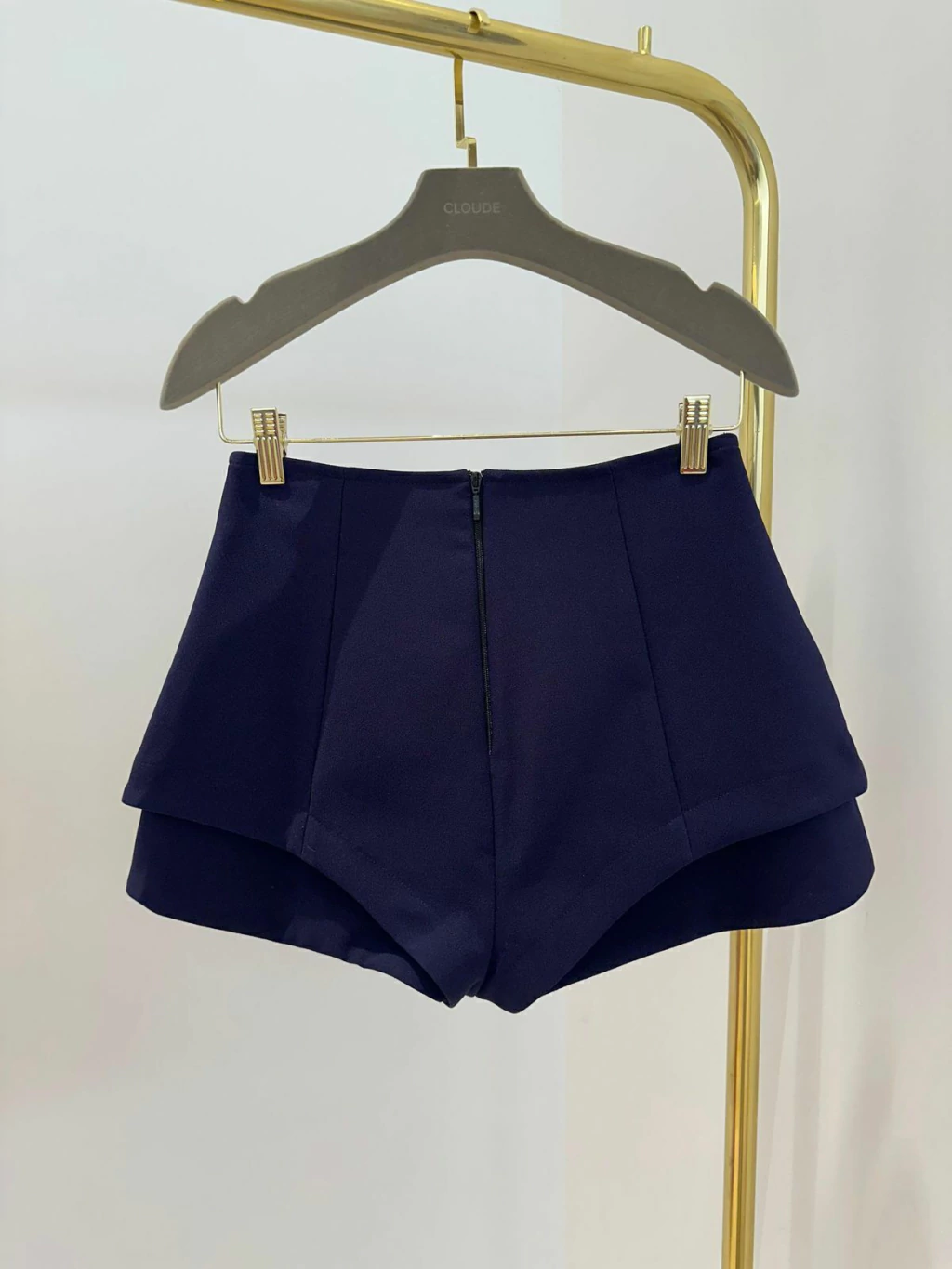 O short Amanda é confeccionado em crepe de alfaiataria e possui comprimento curto.