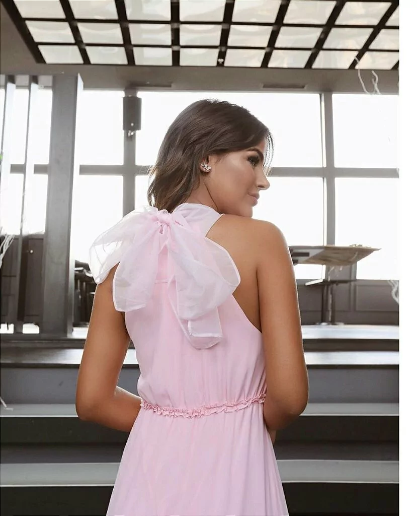 Vestido longo cores e laço de tule hush