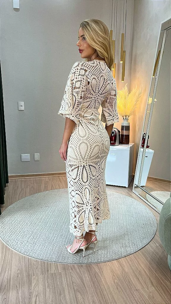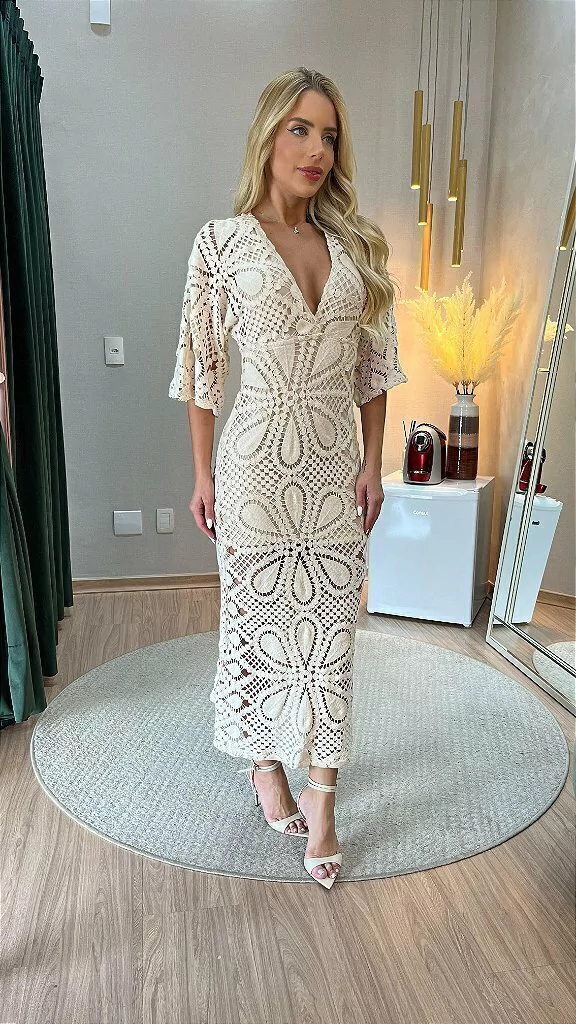 VESTIDO MIDI CREME DANDARA - LOUBUCCA